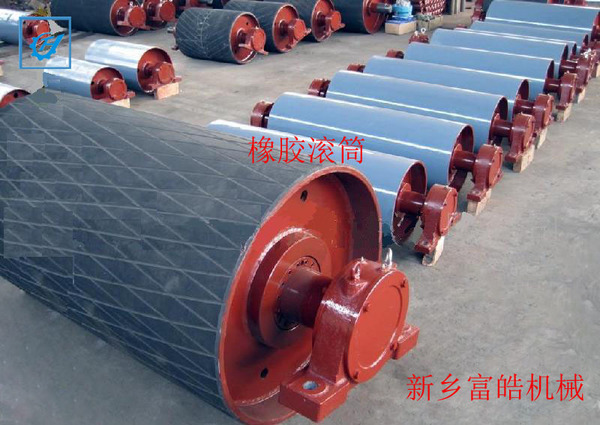 滾筒可以分為兩類:驅(qū)動滾筒(頭滾筒)和改向滾筒(尾輪),驅(qū)動輪傳遞動力的主要部分。有兩種滾筒:表面光滑的和表面包橡膠的,橡膠表面可分為表面光滑的橡膠,橡膠人字表面和;菱形橡膠表面來滿足不同的技術(shù)要求。改向滾筒可分為光滑的橡膠表面和光滑表面。所有的滾筒采用兩種:鑄鐵和鑄鋼件,軸是由45 #鋼,外殼采用焊接組件。